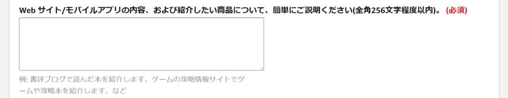 申請フォームに自分のサイトについて説明を書く欄があります。