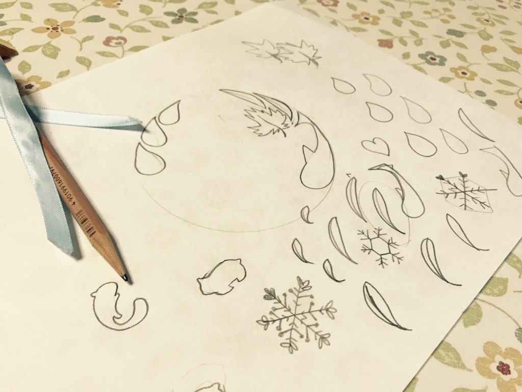 まずはコピー用紙に落書きを色々しながらデザイン案とコンセプトを考えます。